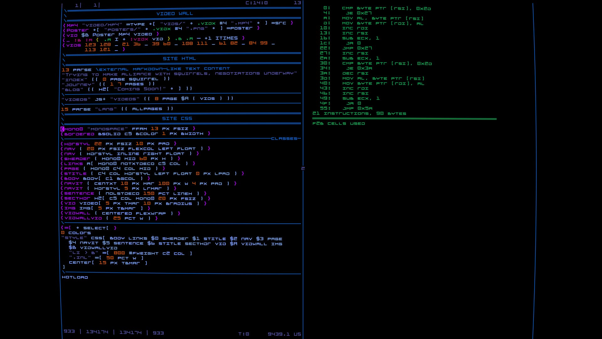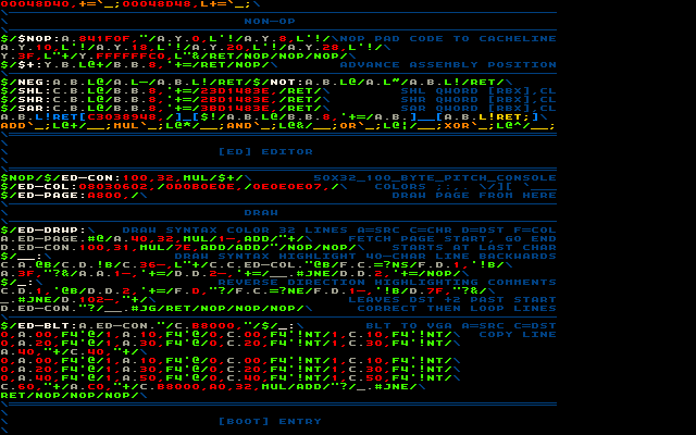 As with most things I find it’s easiest to learn something by constructive a narrative to world build off of. So gaining a historical perspective of FORTH’s development and attempting to chain that in with some “Trial By Fire” guide to forth and a “compiled” FORTH. Most forths have this interpreter layer and operation with how they behave that seems to act as a mock repl or editor. From what I can tell Onat’s and Lottes’s goals are something else, where the editor provided that mechanism not the “language” processing layer.